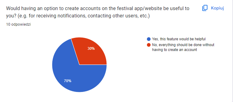The forementioned survey that I created at the beginning of this task has been greatly beneficial in the process of evaluating user needs and preferences, which should be prioritized when creating an application. The results have stated that the small sample of the target audience would find features such as receiving notifications, adding artists to favourites, uploading own videos and photos of their experience at the festival, as well as the menu in the food stalls so that the attendees can prepare before arriving at the festival.