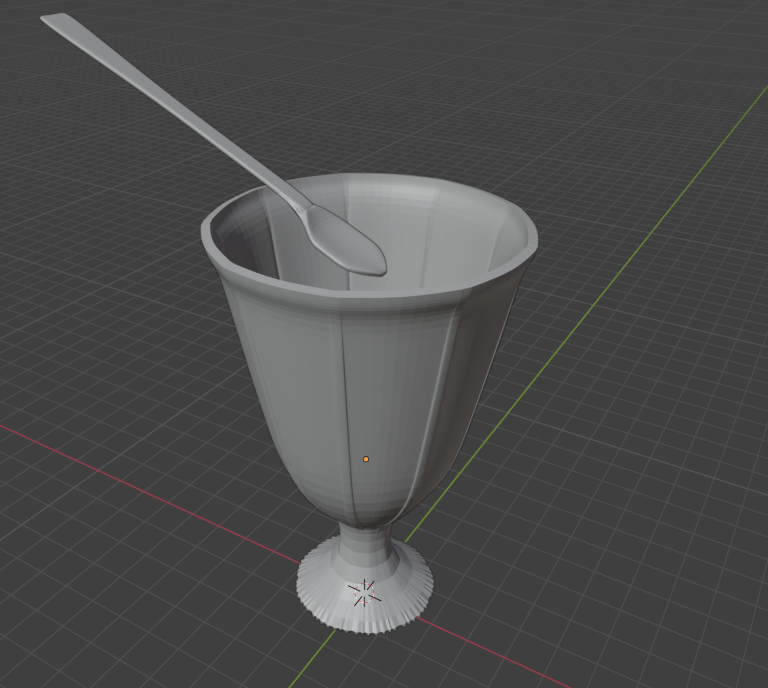 I have tried to create a sundae glass which has a more elegant shape, however errors have been made which resulted in the stem and bottom of the glass looking scratchy and jagged. This is an example of an object which I discarded later due to the fact it did not fit the branding style, however it shows the development of skills in 3D.